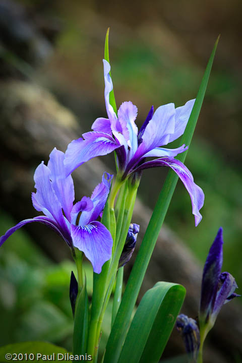 In Point Lobos State Preserve leaving the trail is not allowed. To photograph wildflowers, such as the Iris pictured here, I use a 400mm lens with an extension tube to capture images in restricted areas. This combination allows me to get close up images from a distance of 7-8 feet. This is helpful not only in obeying regulations, but when safety or environmental ethics issues prevent me from approaching the subject.